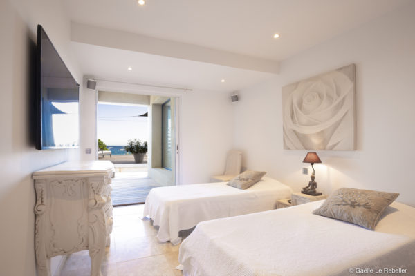 Cette magnifique villa Style Californienne est construite au premier rang devant la mer. Elle bénéficie d’une exposition plein sud et est entourée d’un jardin paysagé d’environ 1500 m² avec piscine en forme libre.